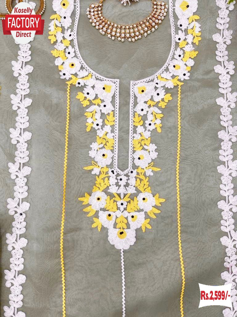 Light Green Soft Organza Embroidered Kurtha Suruwal Piece