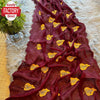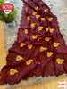 Maroon Chiffon Silk Saree With Thread Embroidery Work
