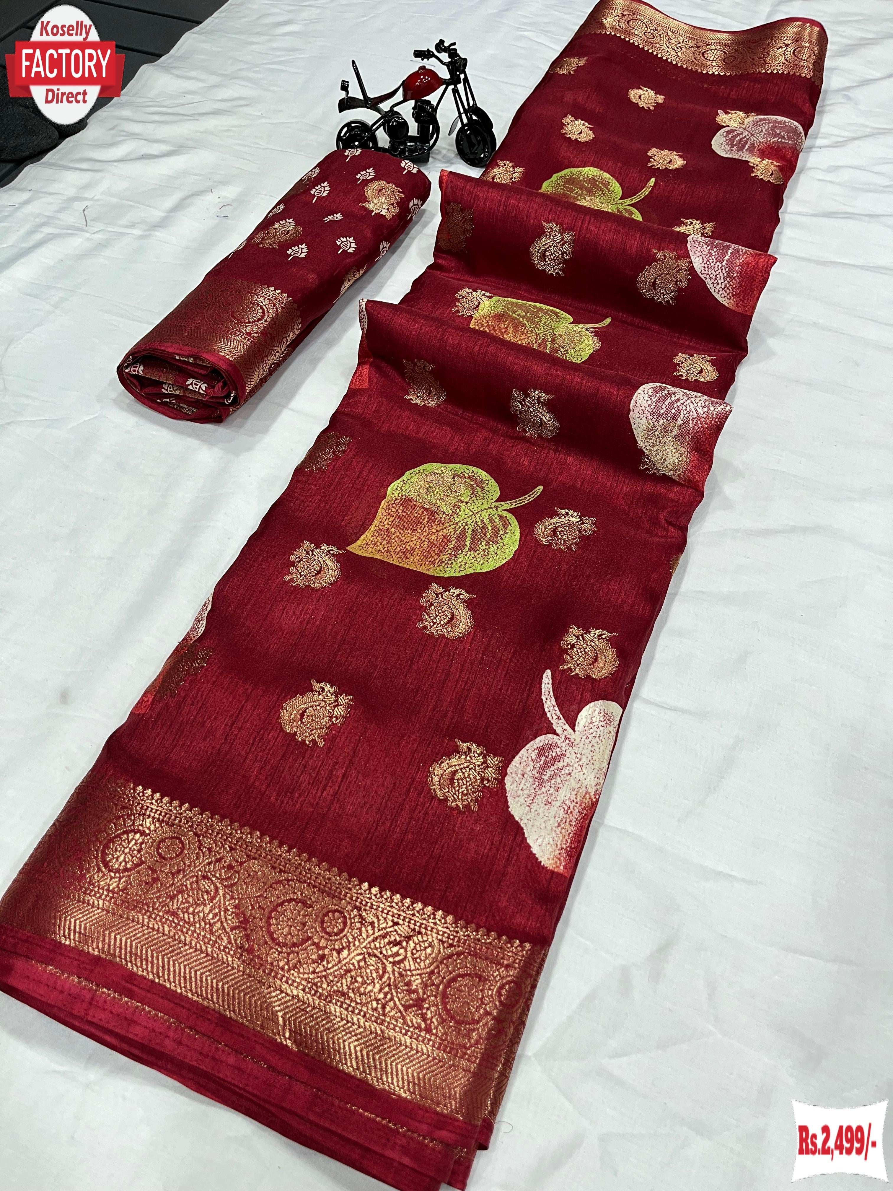 Maroon Dola Silk Jacquard Work Partywear Saree