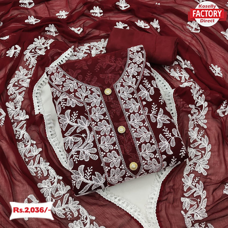 Maroon Embroidered Kurtha Suruwal Piece
