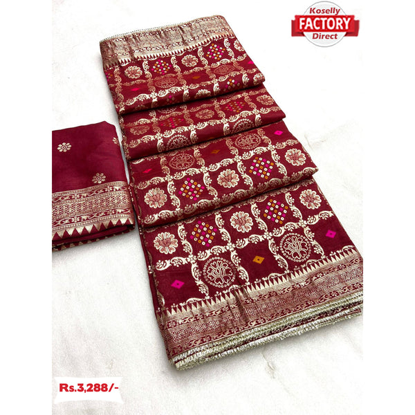 Maroon Pure Viscose Rich Zari Weaving Meenakari Saree