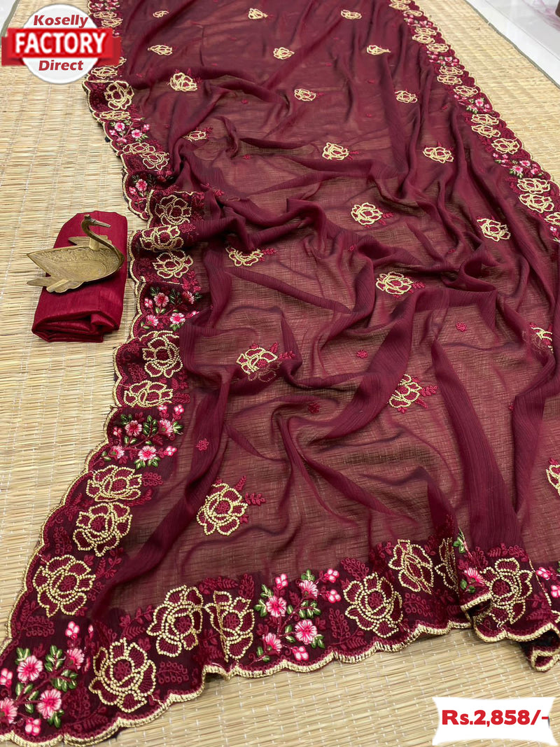 🫶🏻 Beautiful Zomato chiffon fabric saree with thread embroidery work with tone to tone mono banglori silk plain blouse.