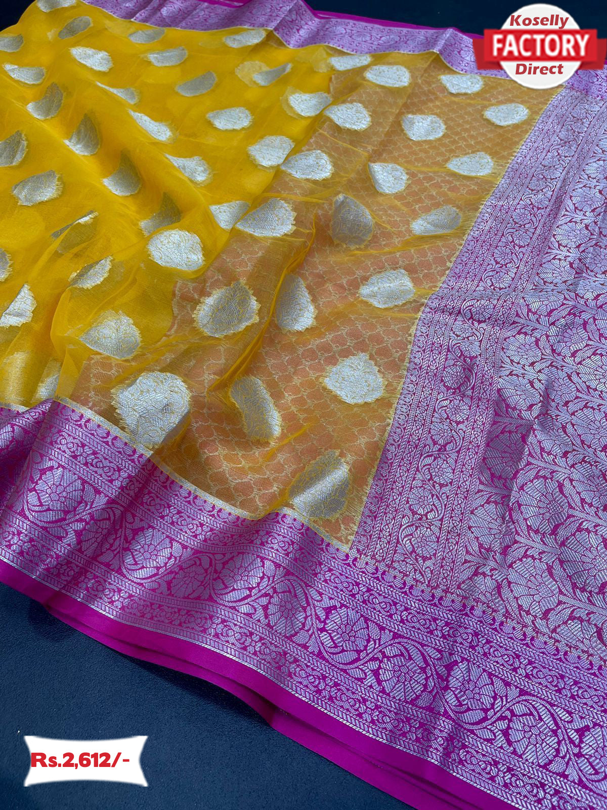 Mustard Yellow Organza Banarasi Silk Saree