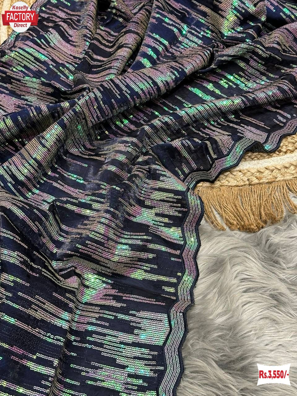 Navy Blue Jimmy Choo Partywear Sequins Saree