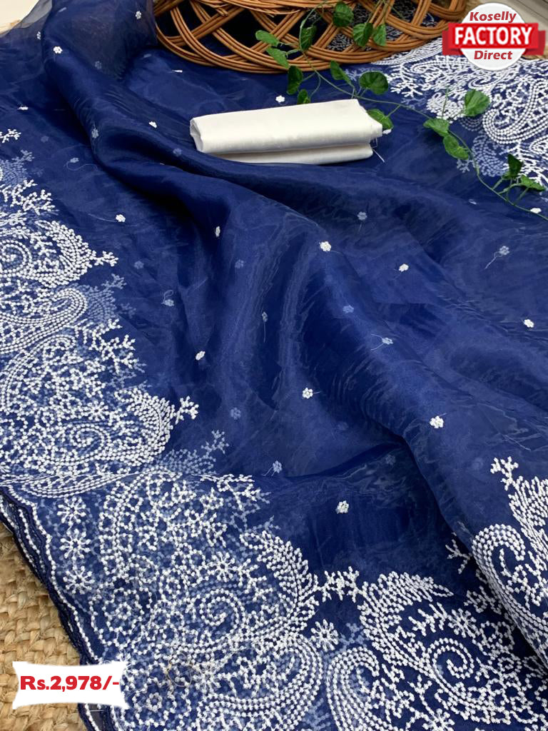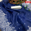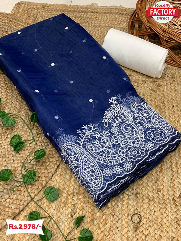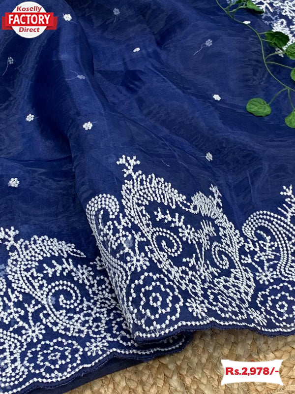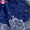 Navy Blue Organza Silk Saree With Thread Embroidery