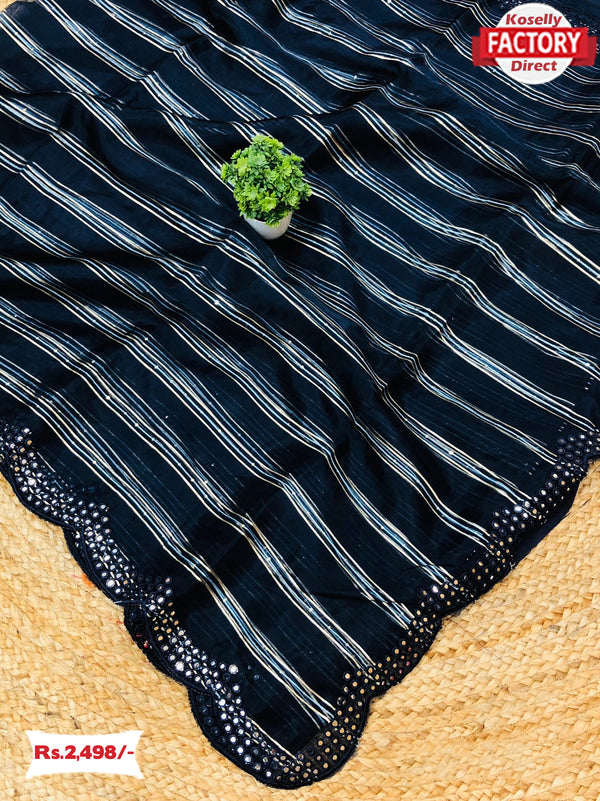 Navy Blue Pure Organza Zari And Sequins Saree