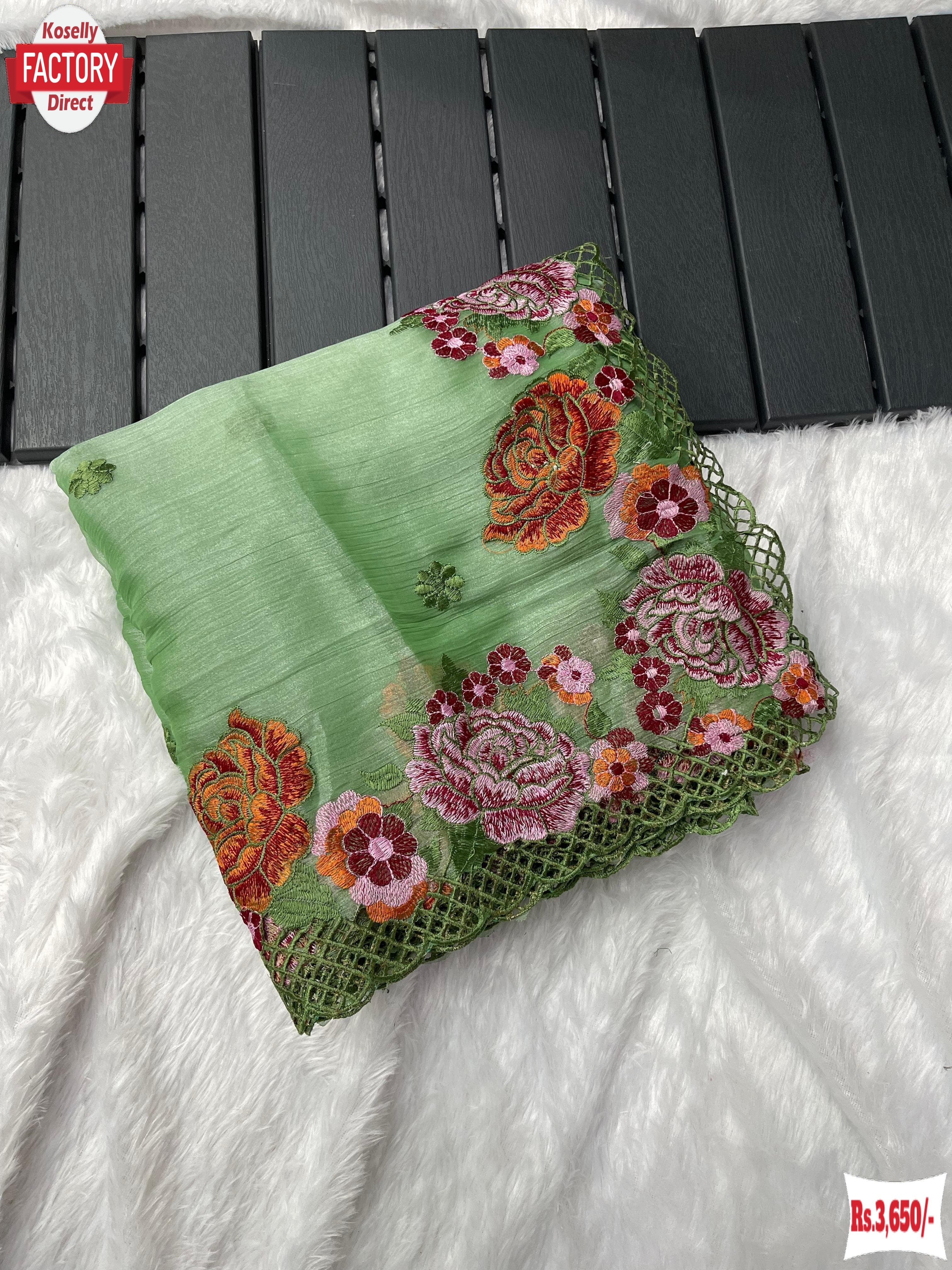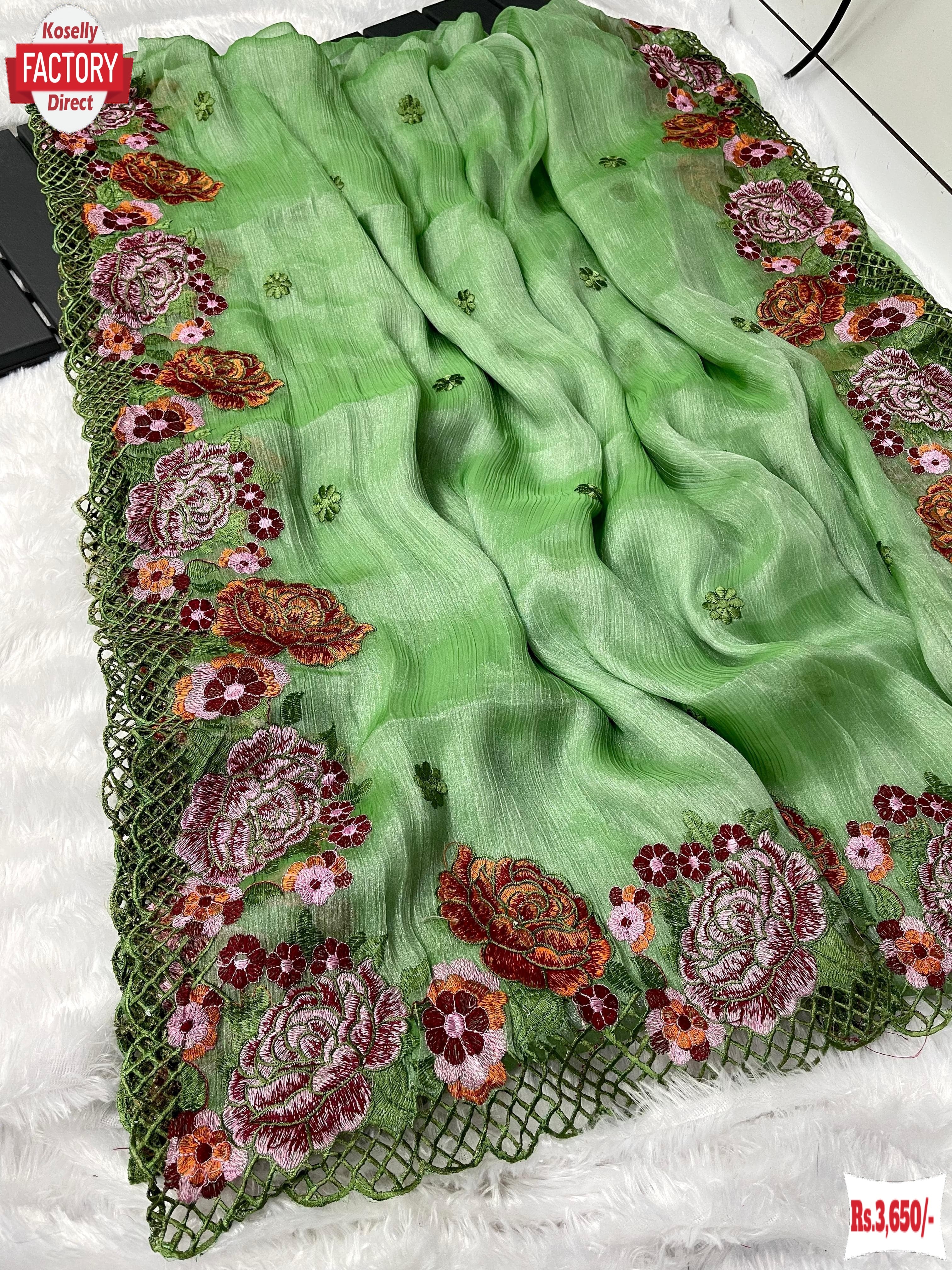Parrot Green Jimmy Choo Silk Embroidered Partywear Saree