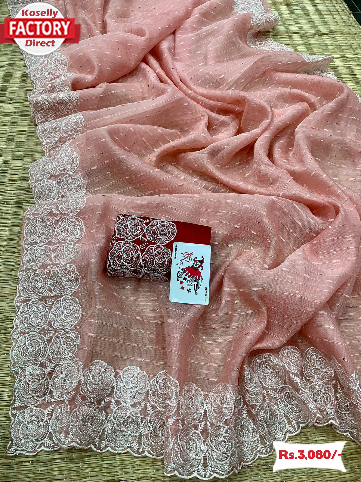 Peach Net Organza Embroidered Sequins Partywear Saree
