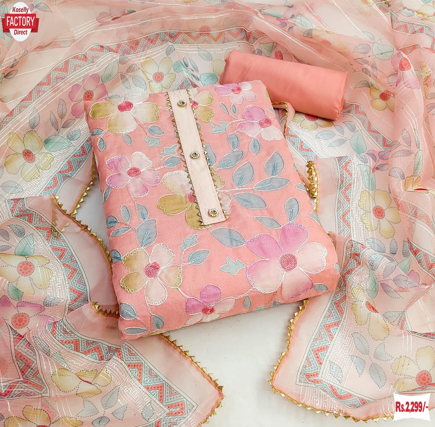 Peach Organza Silk Kurtha Suruwal Piece With Work