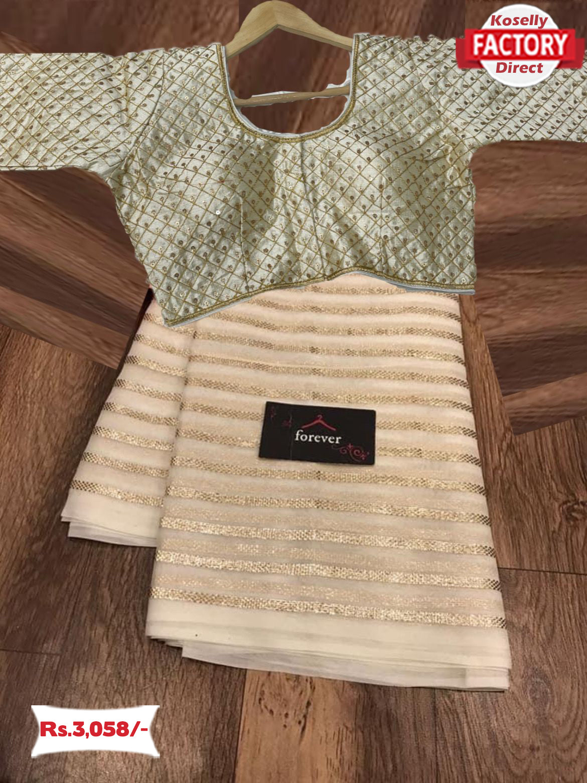 Peach Pure Georgette Zari Stripes Saree With Readymade Blouse