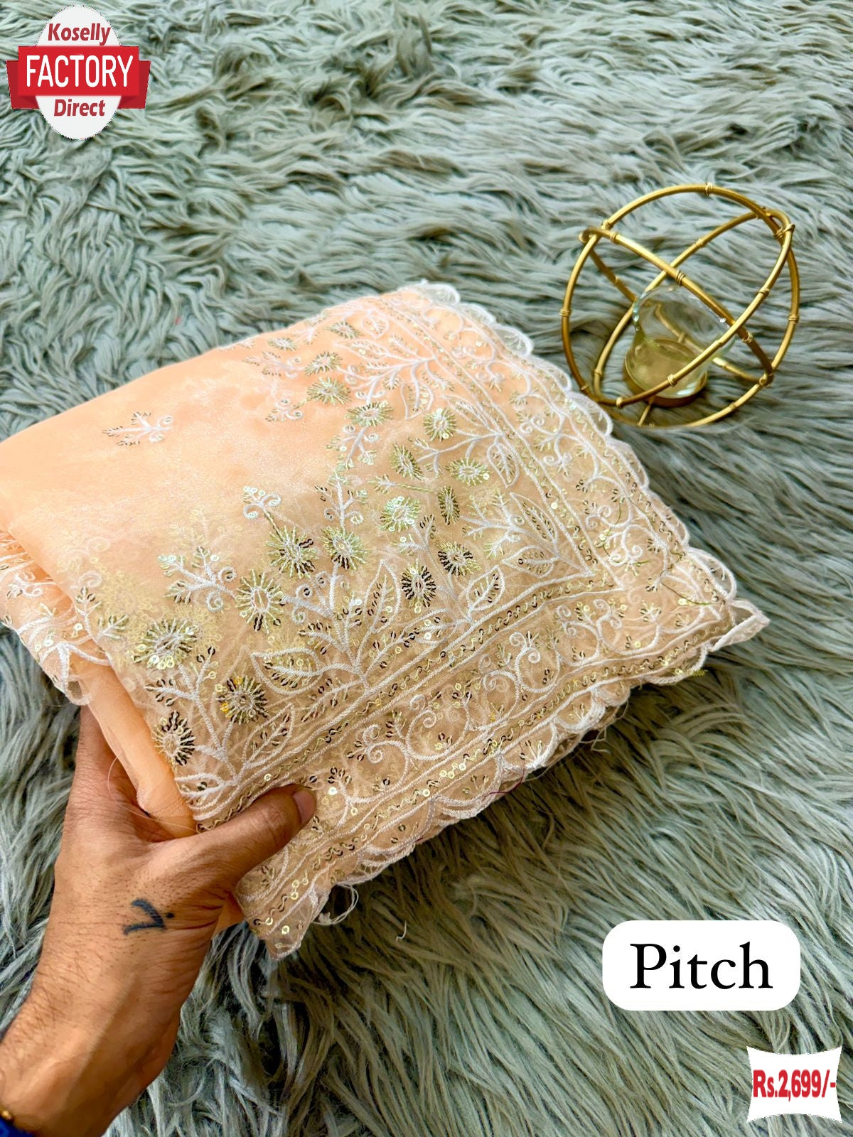Peach Pure Organza Sequins And Thread Work Partywear Saree