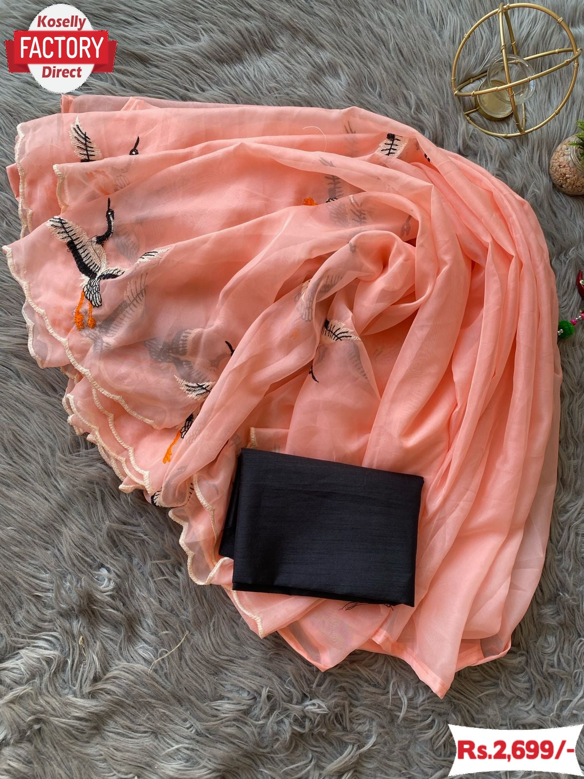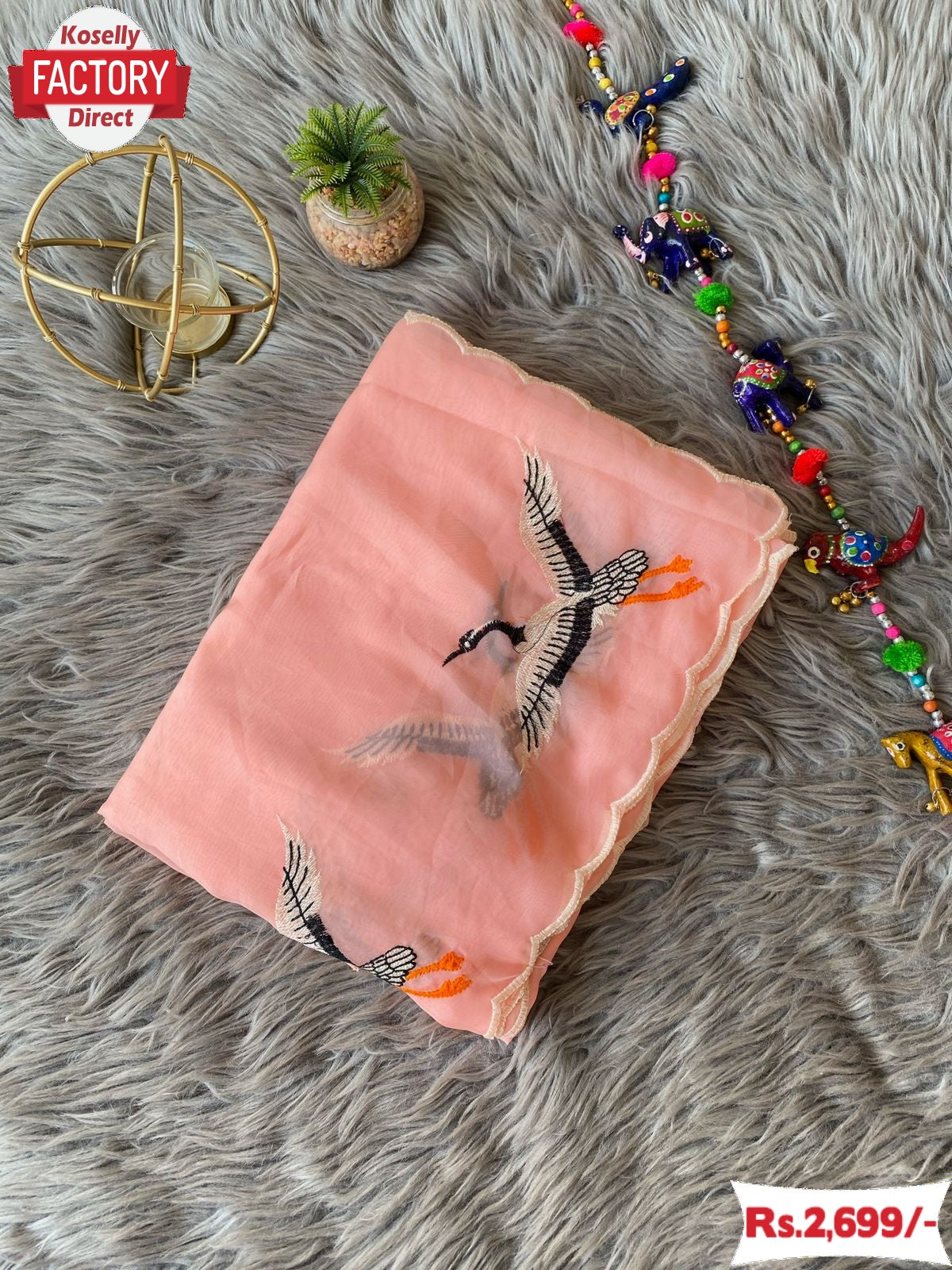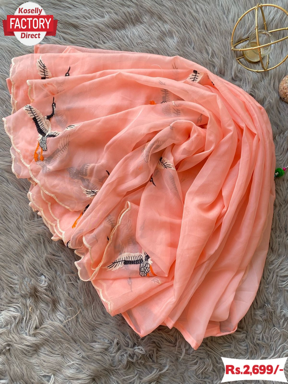 Peach Pure Soft Organza Duck Embroidered Fancy Saree