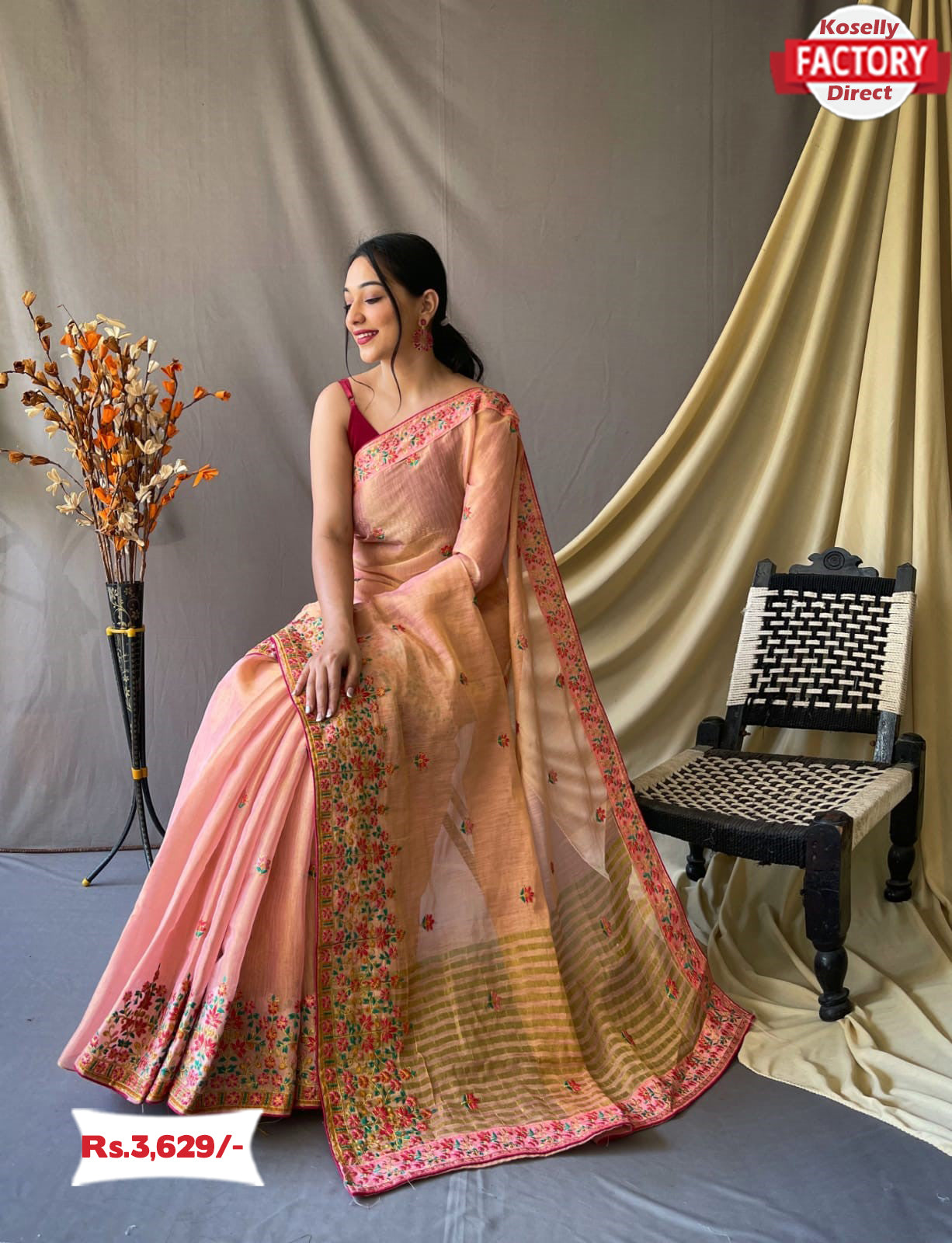 Peach Pure Tussar Silk Saree
