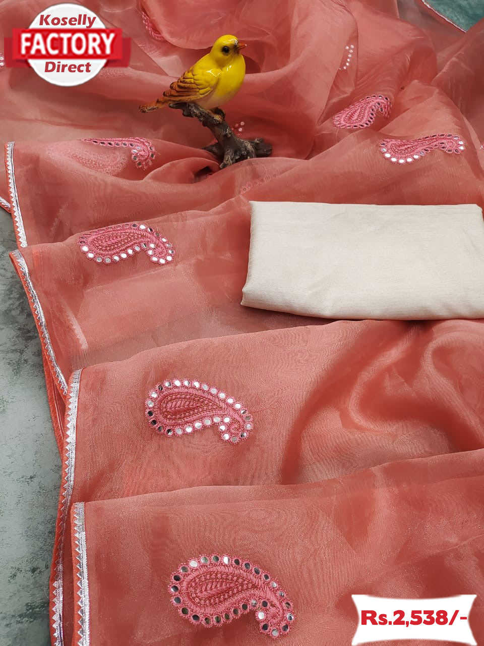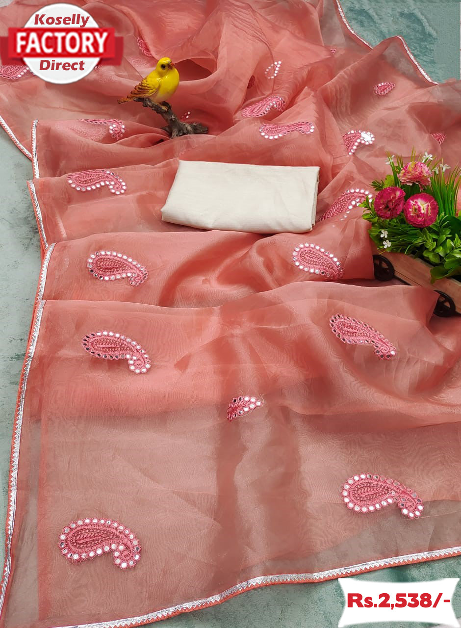 Peach Soft Organza Saree With Embroidery