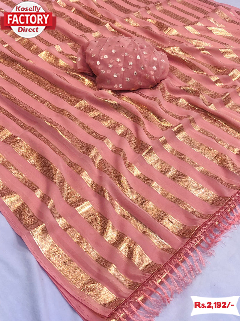 Fabric details - Chiffon gold zari weaving with beautiful shining
