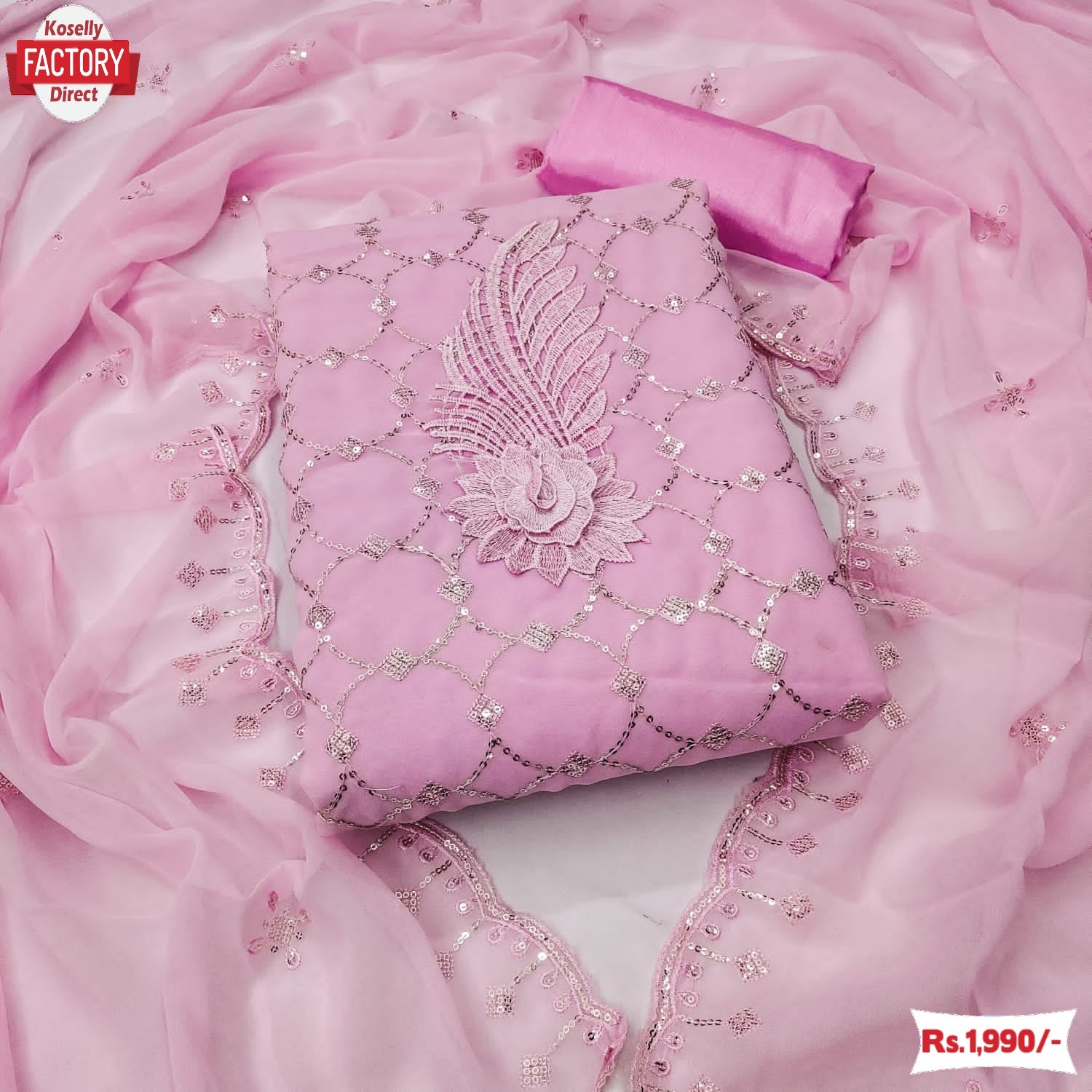 Pink Georgette Sequins Embroidered Kurtha Suruwal Piece