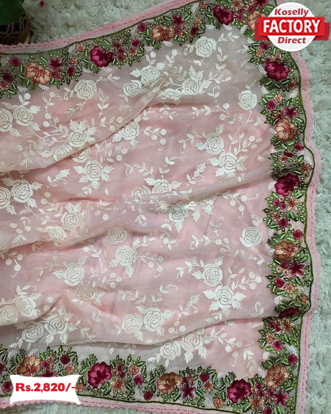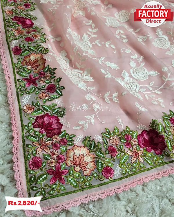 Pink Organza Chikankari Worked Partywear Saree