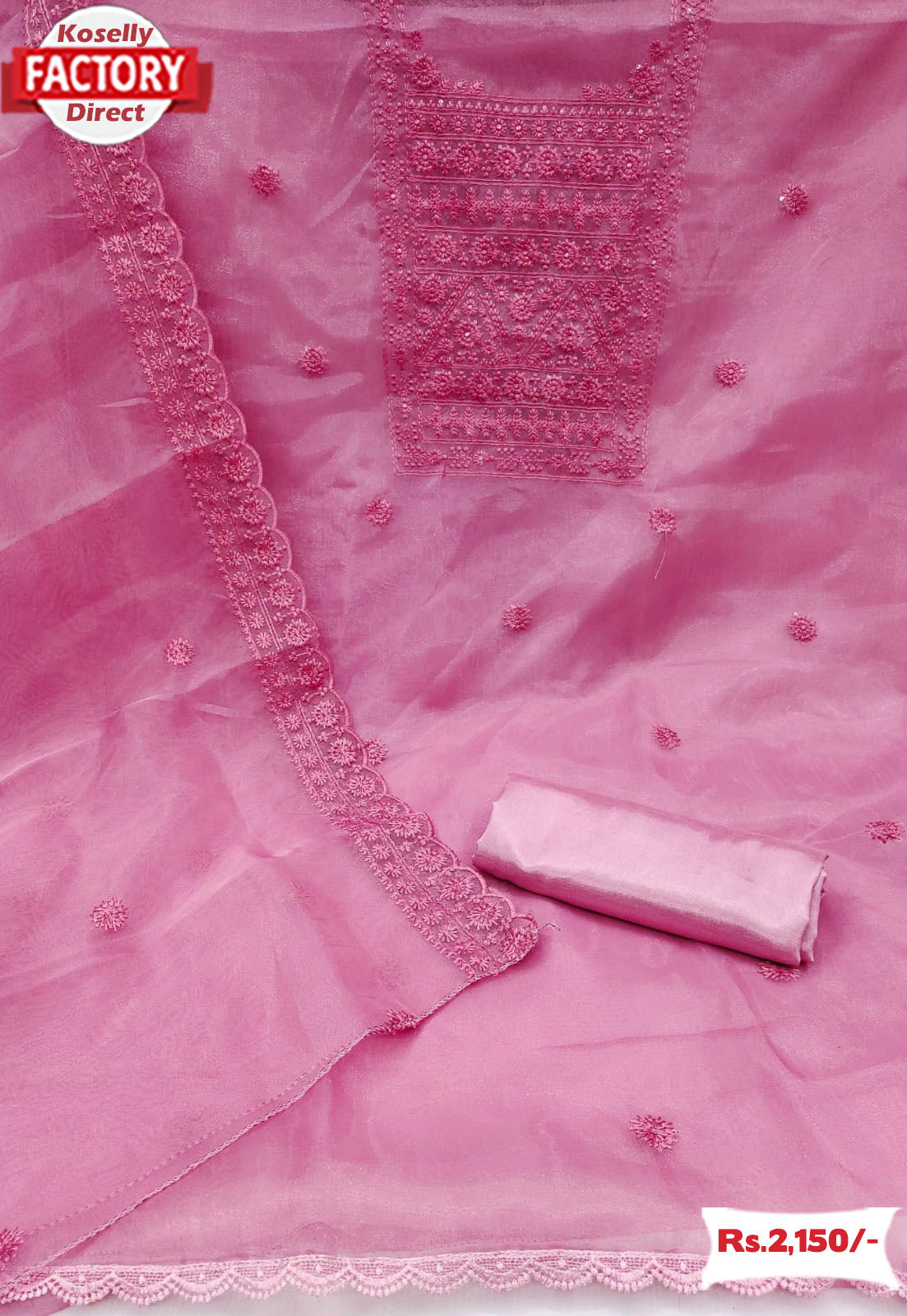 Pink Organza Embroidered Kurtha Suruwal Piece