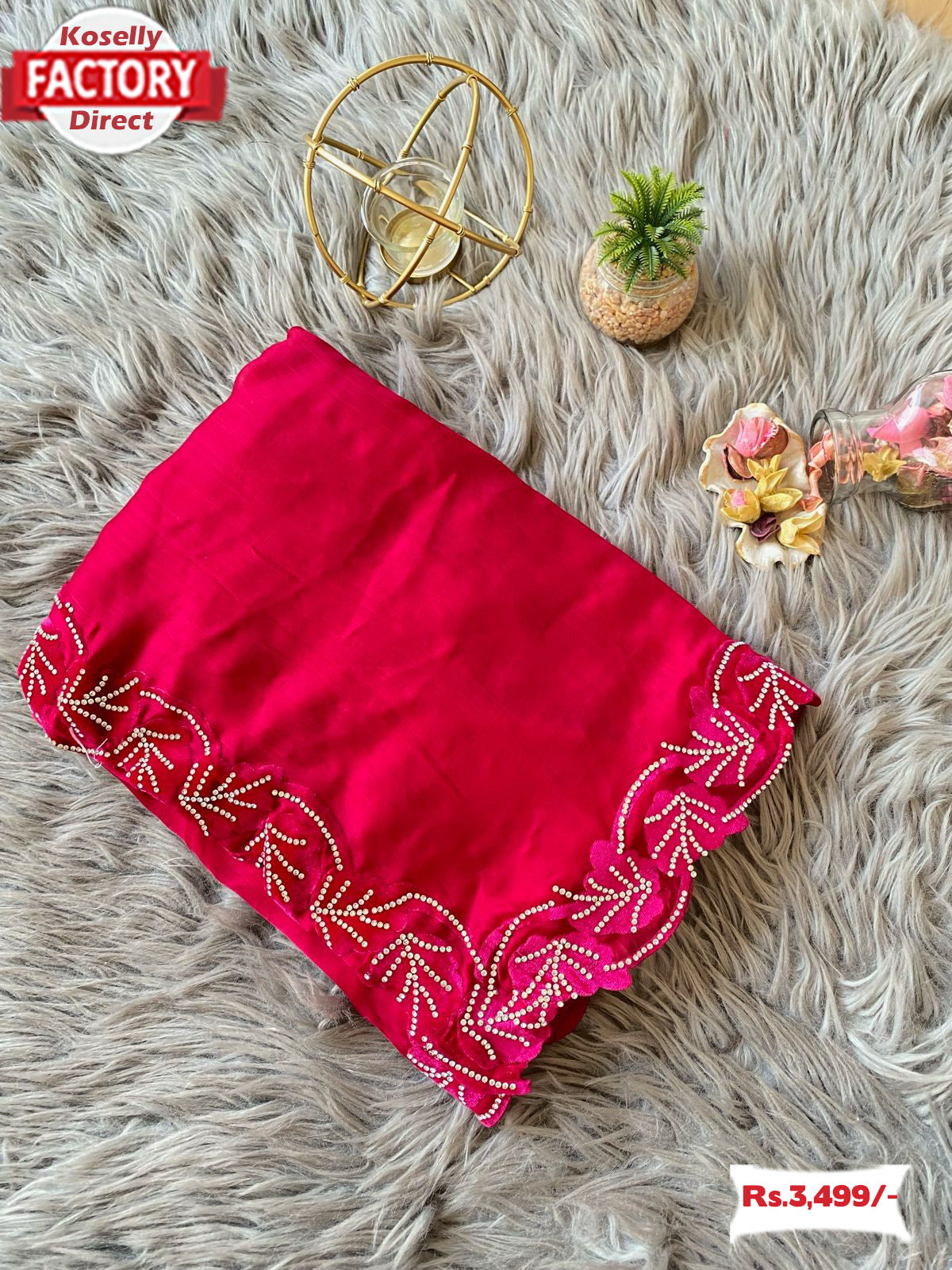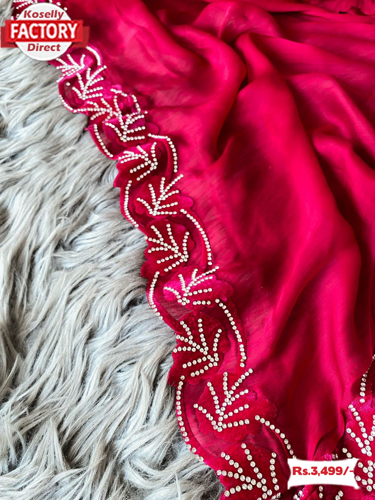 Pink Pure Chiffon Partywear Saree With Zircon Embroidery