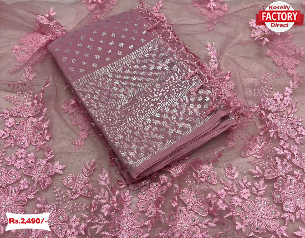 Pure laser georgette saree with rich silver foil with extra superb blouse of Moti embroidery
