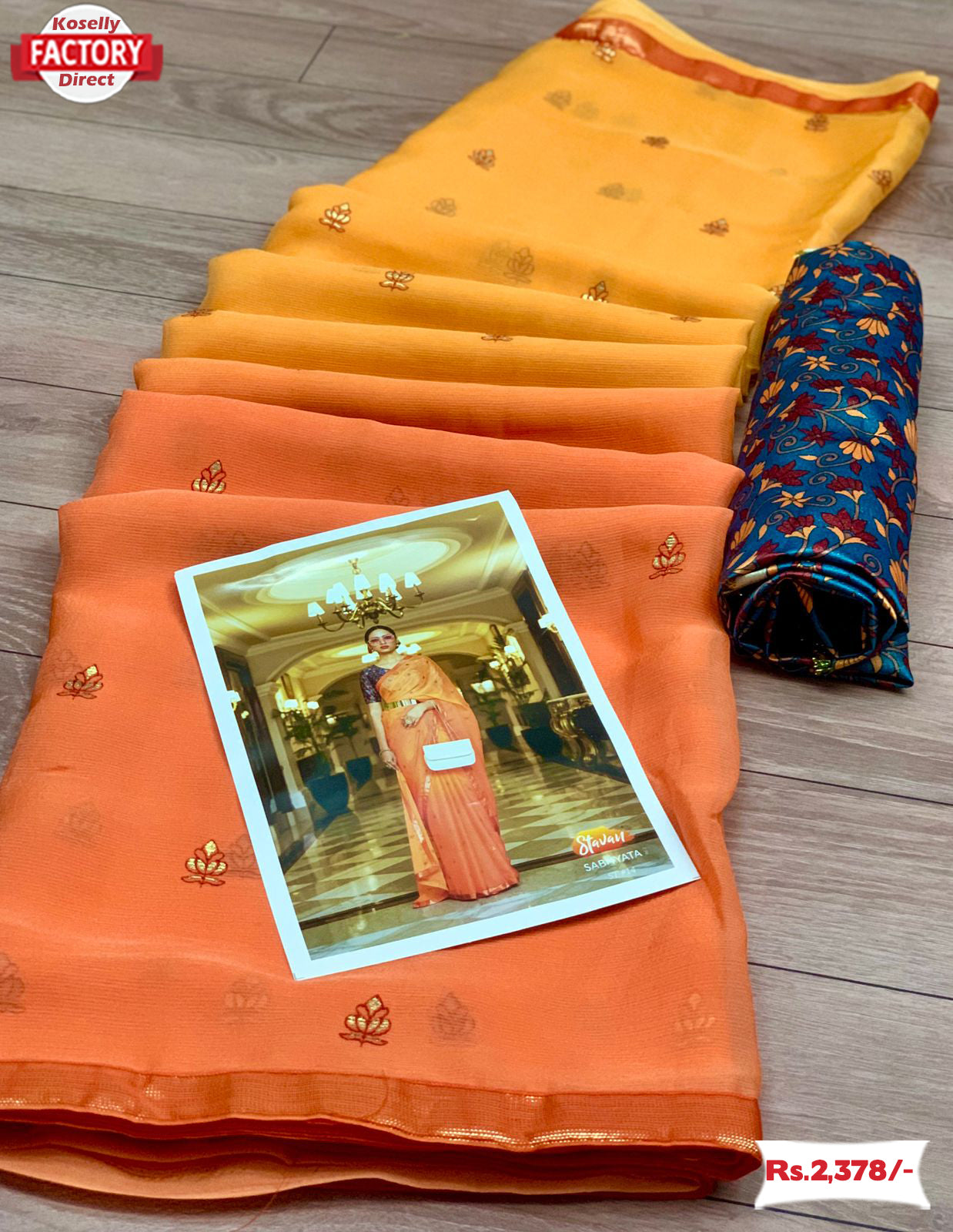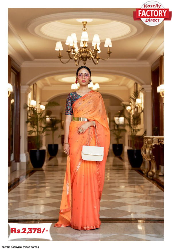 Fabric: Pure chiffon fabric with weaving foil print and digital gotta print blouse. Simplicity at its best. Feel comfortable all day long with this fabulous saree.