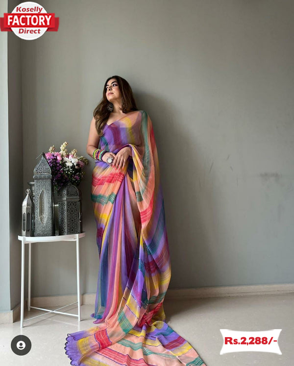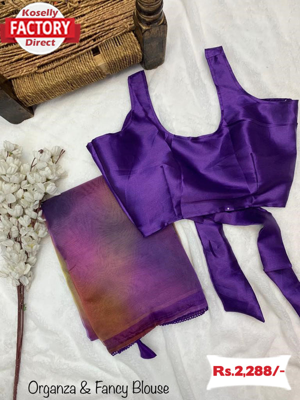 Multi-colour Fancy Organza Saree With Readymade Blouse
