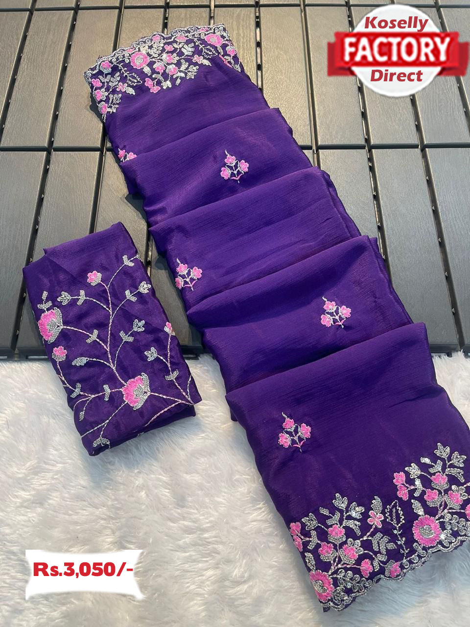 Purple Multi-embroidered Chinnon Crepe Silk Saree