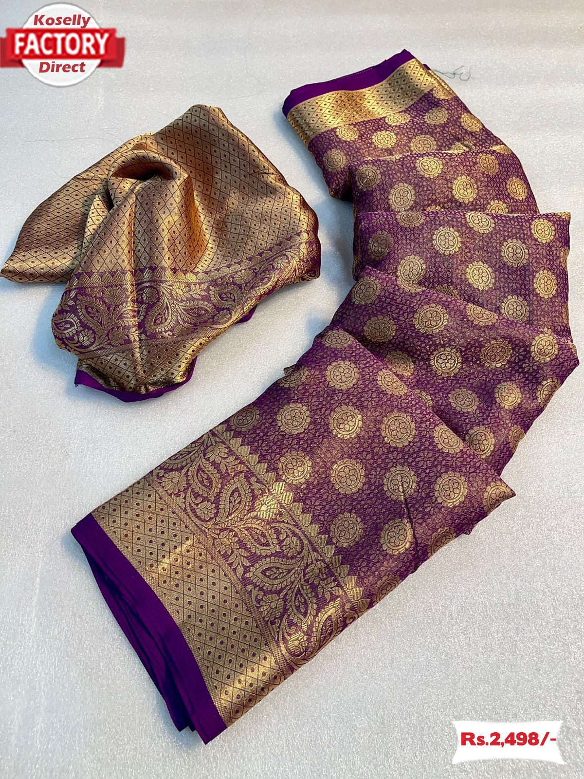 Purple Pure Viscose Georgette Banarasi Rich Zari Saree