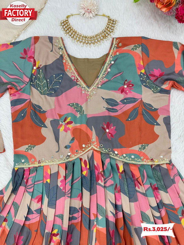 Designer Suit on heavy rayon fabric with inner and digital print and hand work and Pant also on rayon fabric and dupatta on organza silk fabric with fancy lace.