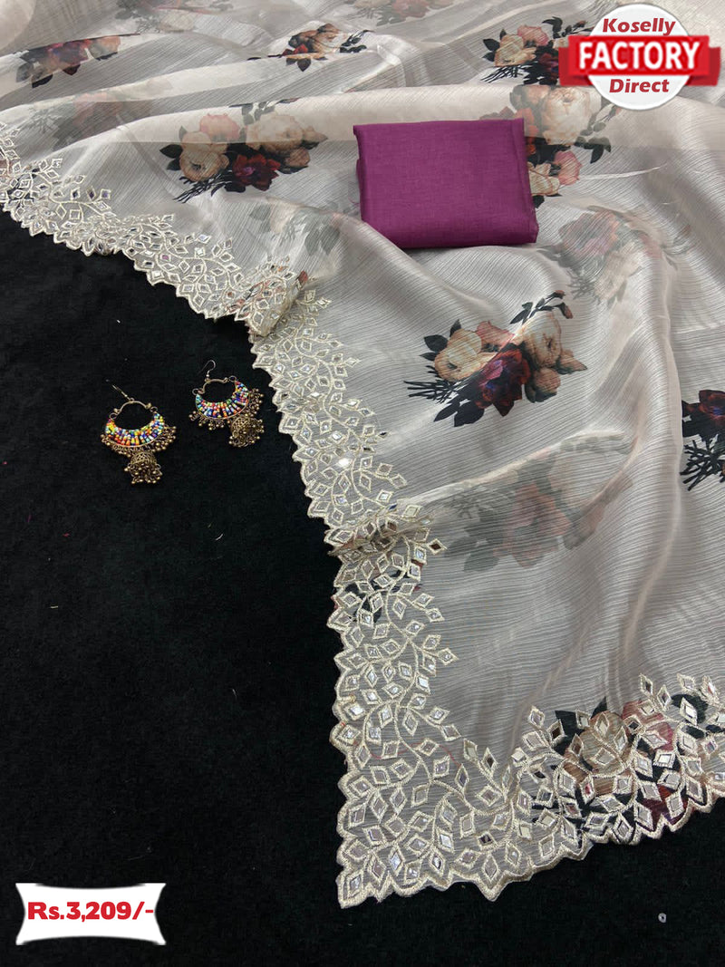 Work : Beautiful embroidery and original Mirror work and digital print all over saree with beautiful cut-work border.
