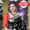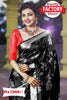 Rose Floral Black Saree with Silver Zari Jacquard Work