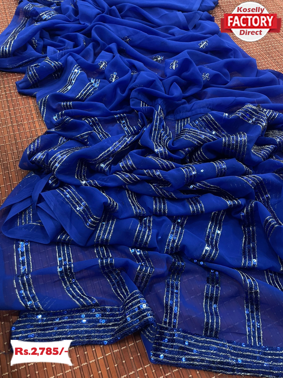 Royal Blue Pure Blooming Georgette Partywear Saree
