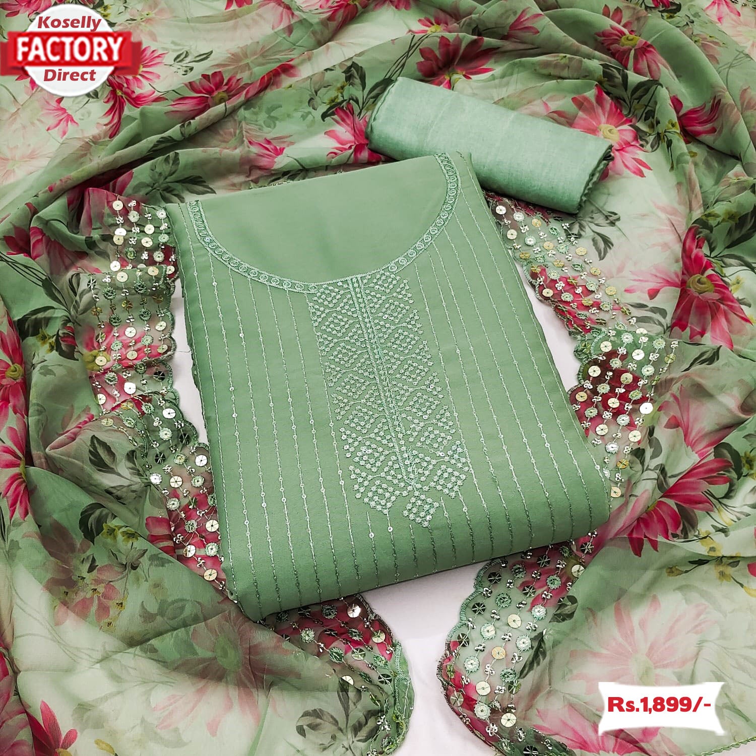 Russian Green Georgette Sequins Work Kurtha Suruwal Piece
