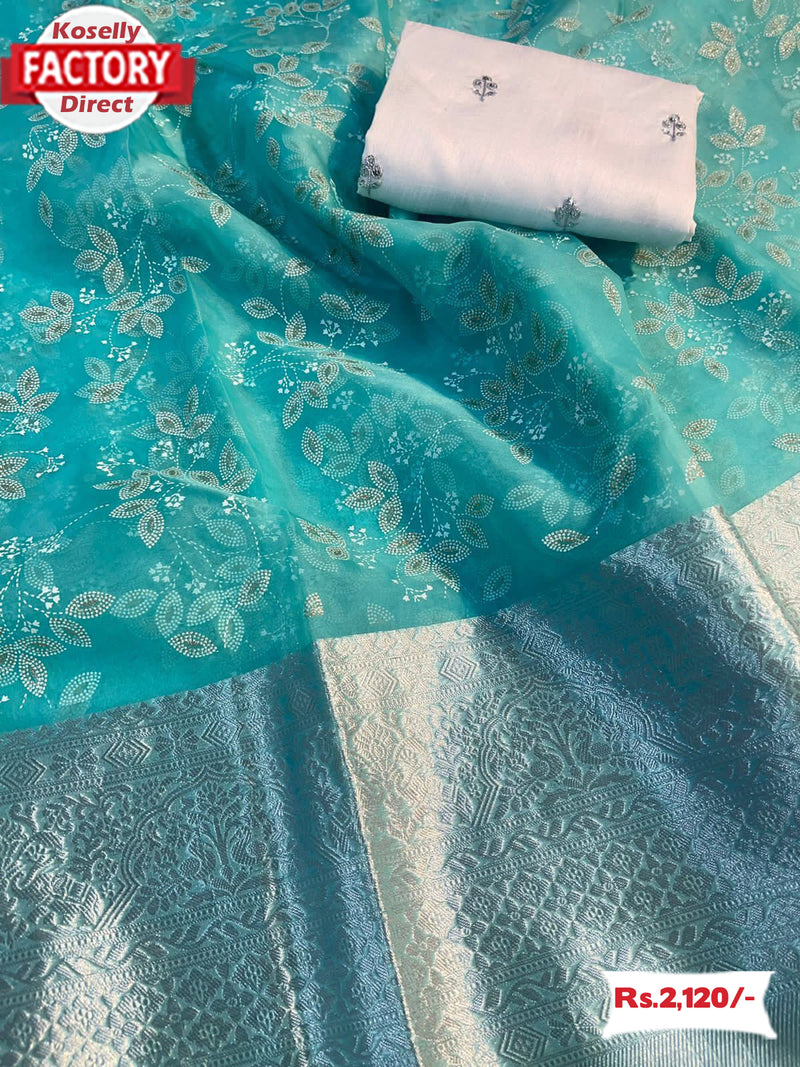 Sky Blue Kanchi Organza Pigment Foil Work Saree