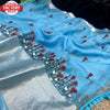 Organza weaving border Silk Saree (organza with silver border) With embroidery Work in all over saree having a Super silver Zari on Border with attached tassles on pallu
