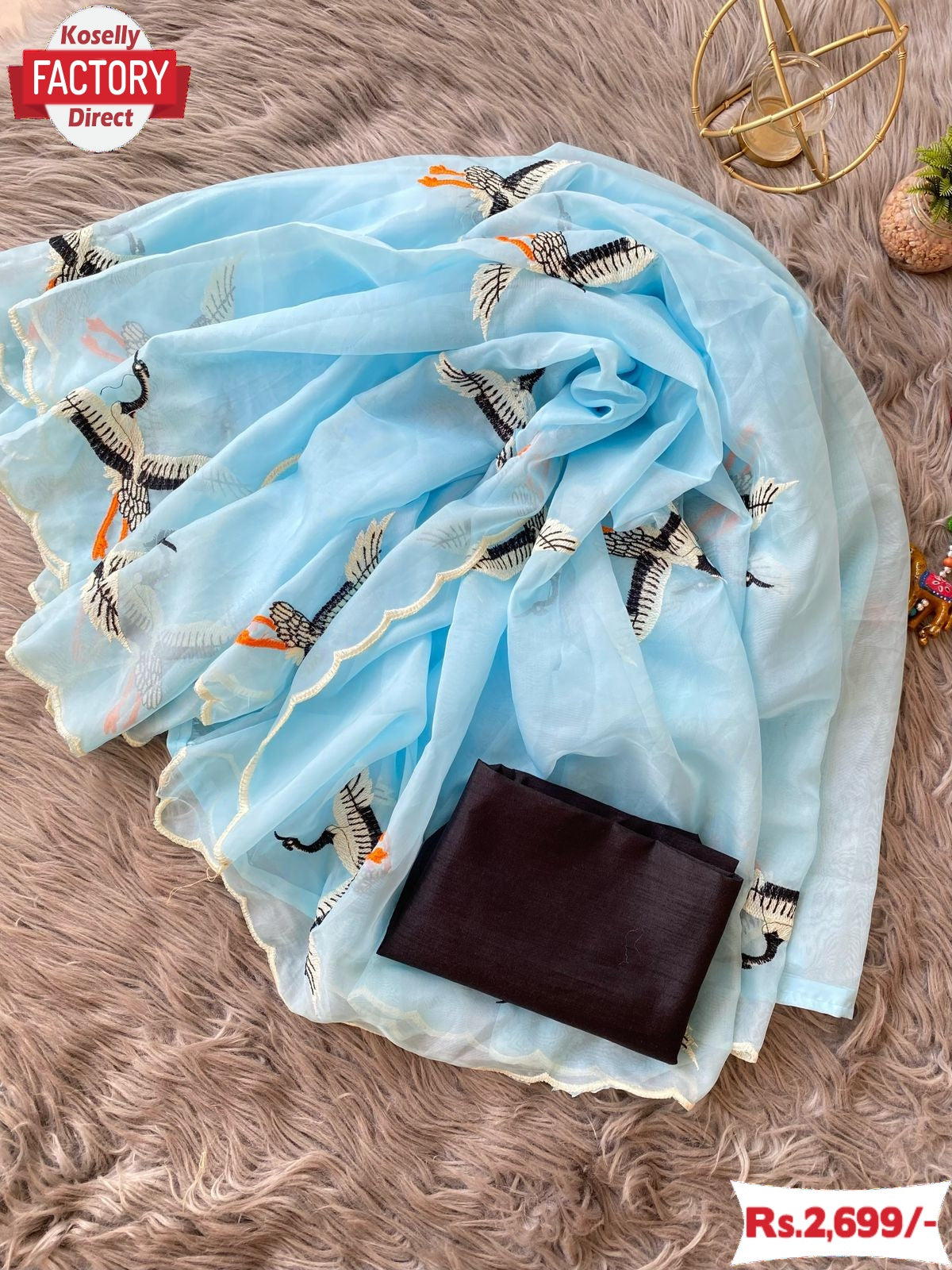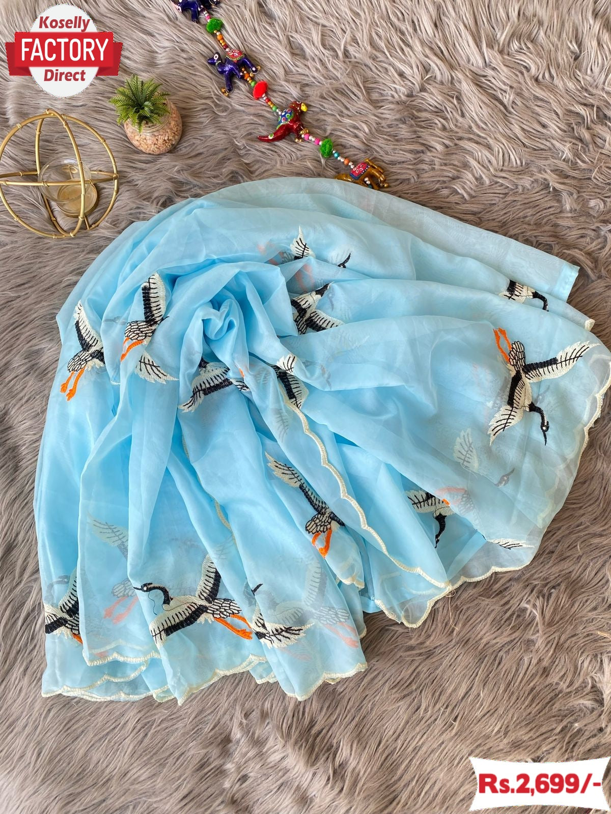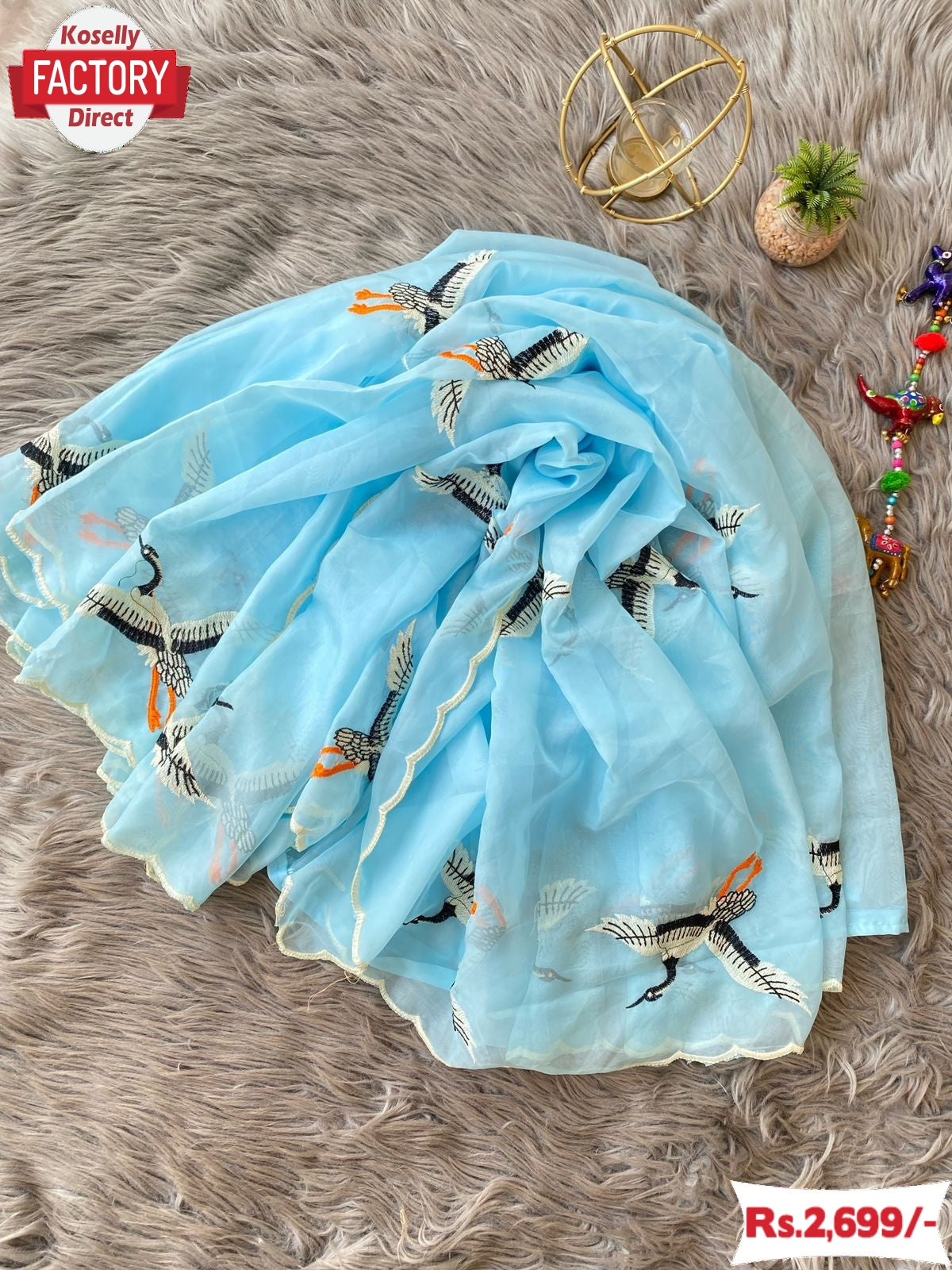 Sky Blue Pure Soft Organza Duck Embroidered Fancy Saree