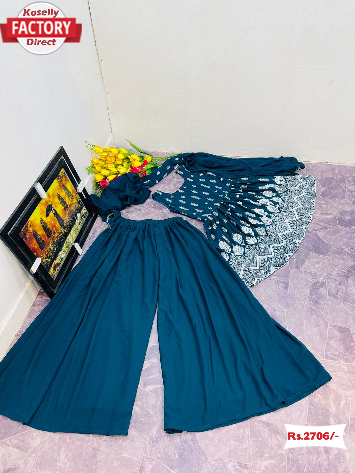 Beautiful embroidered peplum kurtha sharara and dupatta set.