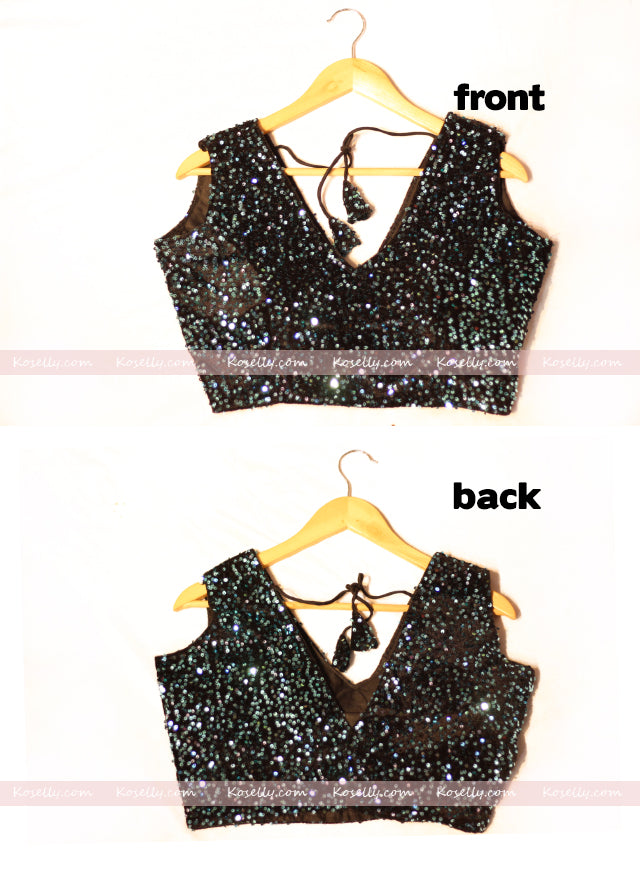 Turquoise Sequins V-neck Blouse