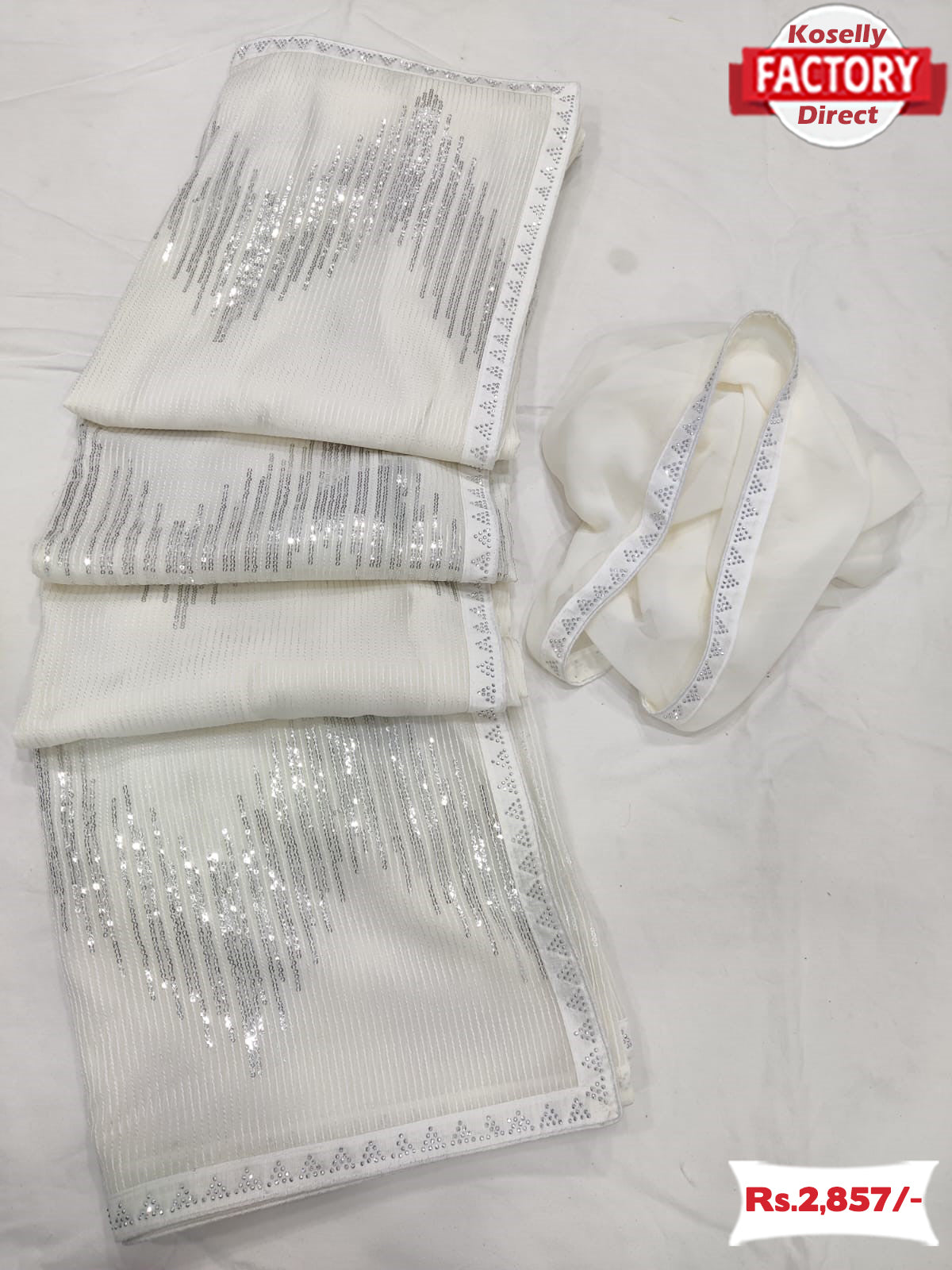 White Georgette Partywear Sequins Saree