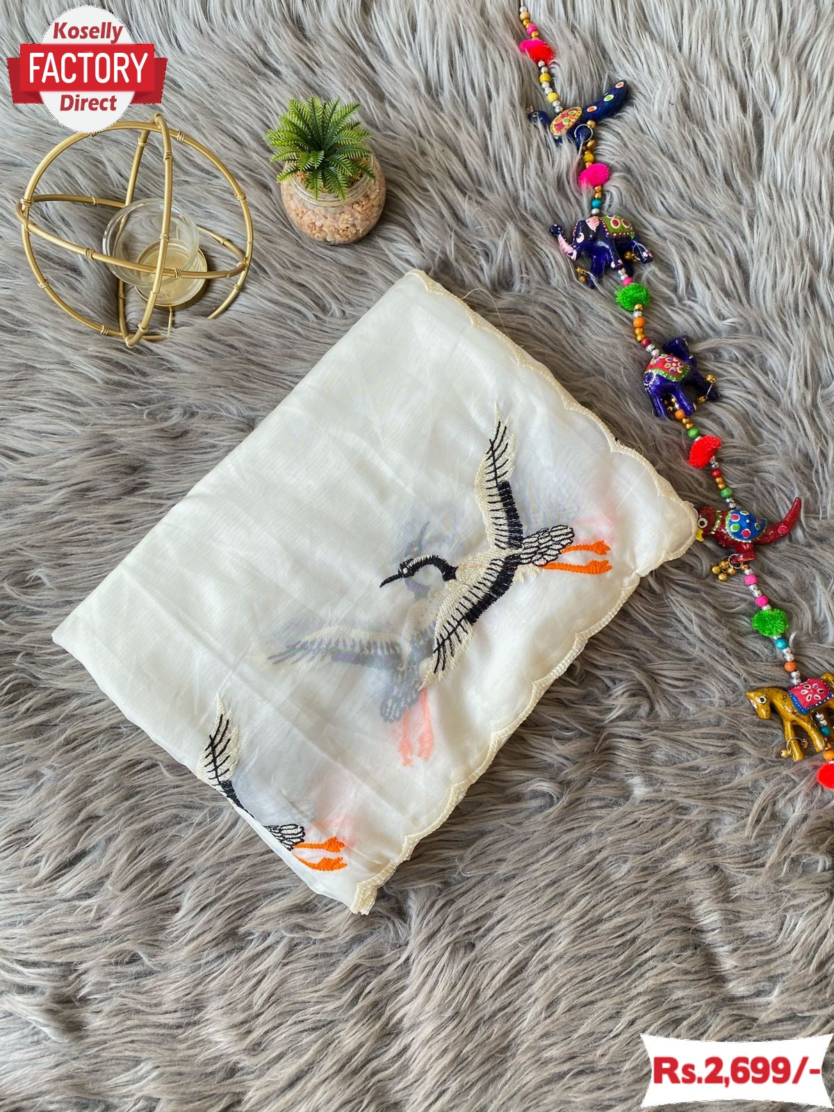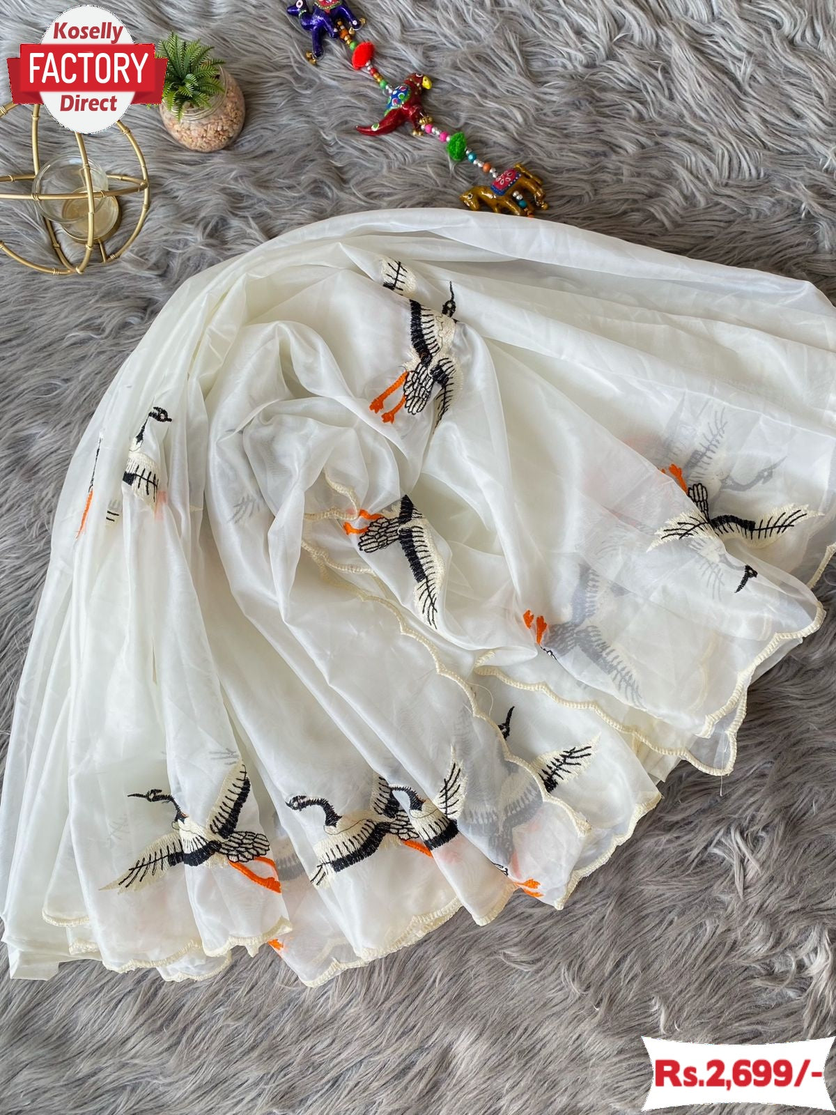 White Pure Soft Organza Duck Embroidered Fancy Saree