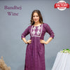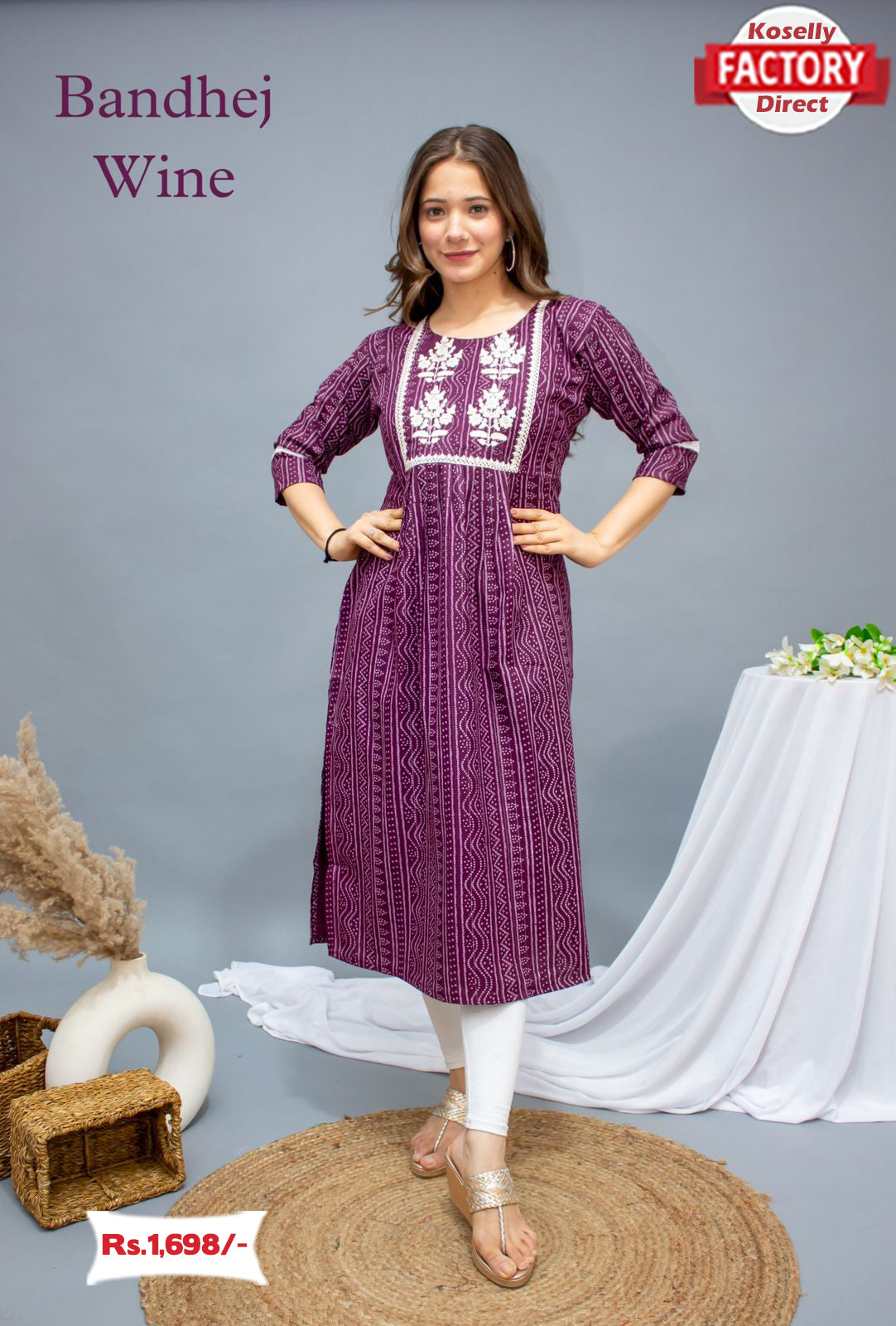 Side Cut Embroidery Work Kurti With Bandhej print for a stylish and classy look.