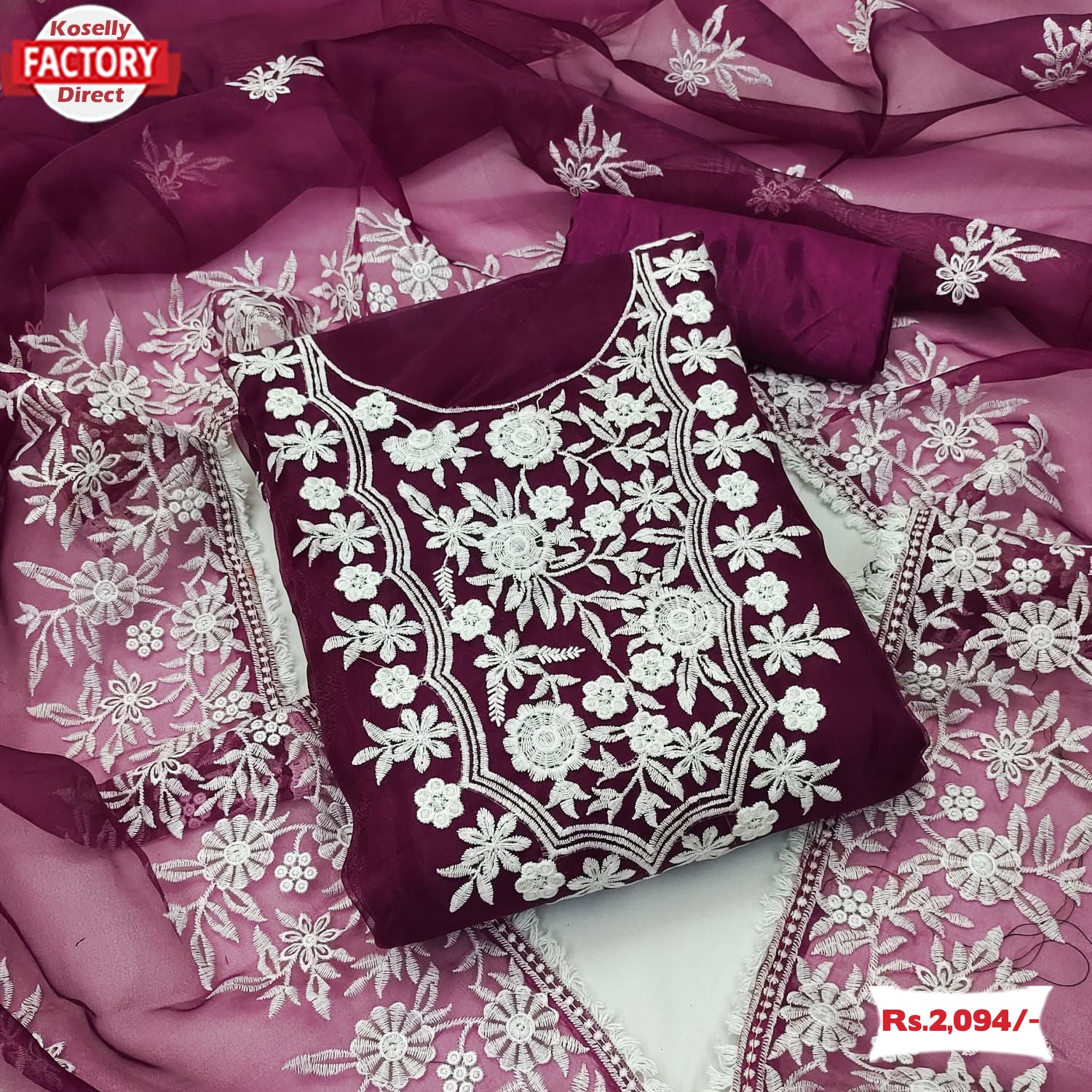 Wine Organza Embroidered Kurtha Suruwal Piece