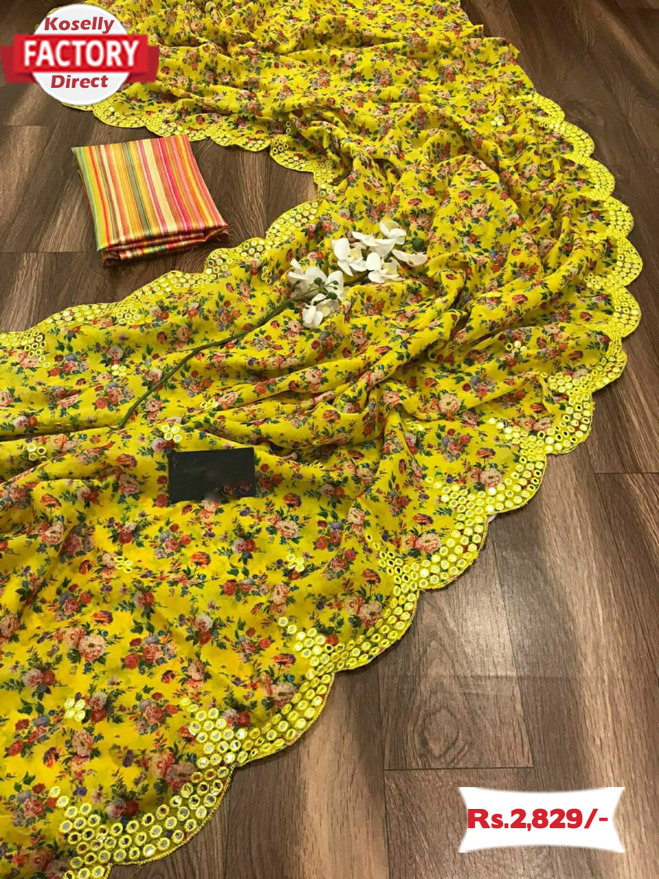Heavy pure rich soft organza saree with designer foil mirror and thread C-Pallu work along with designer printed blouse and cutwork. Premium quality item for you to stand out.