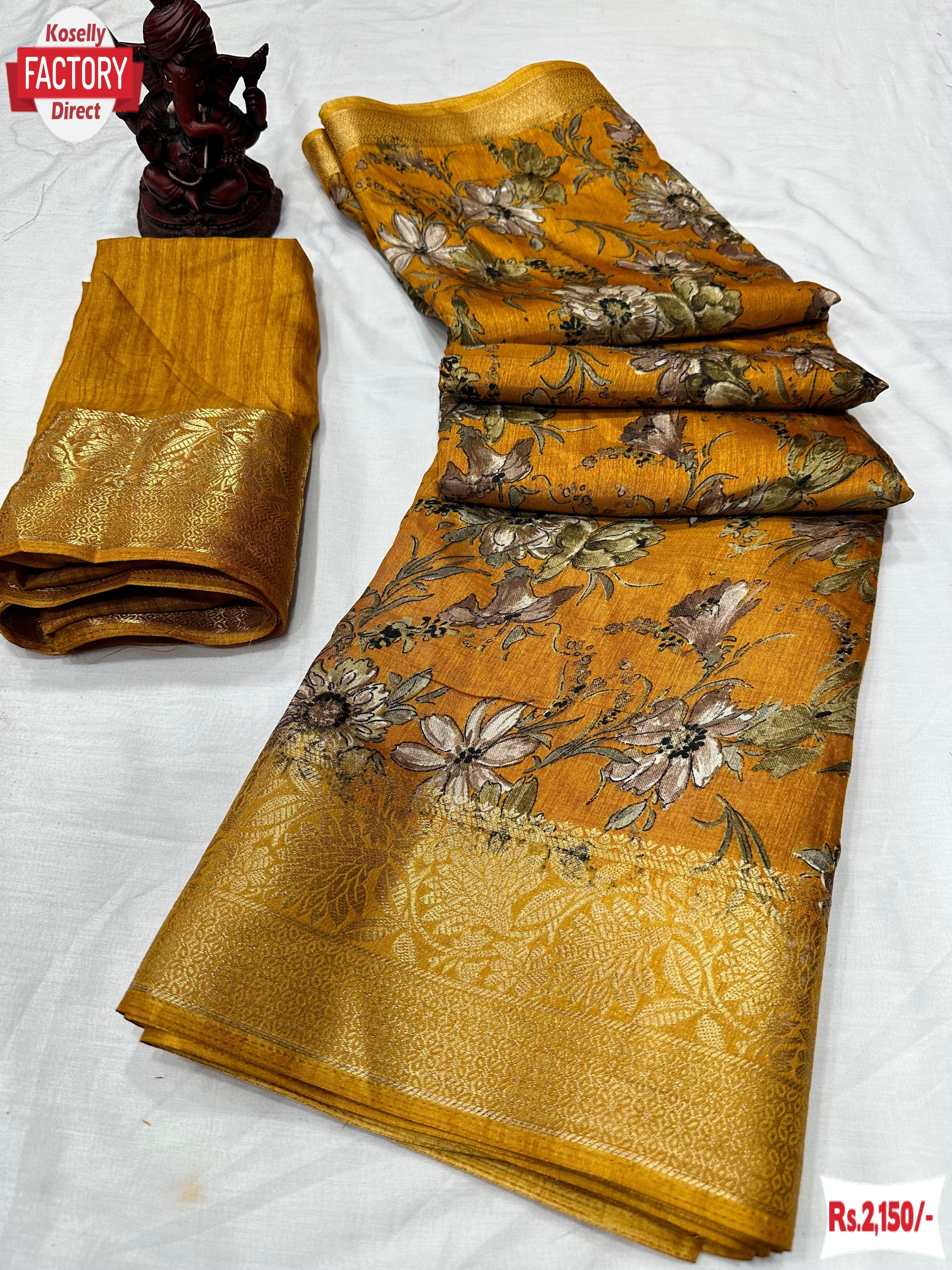 Yellow Dola Silk Saree With Banarasi Border