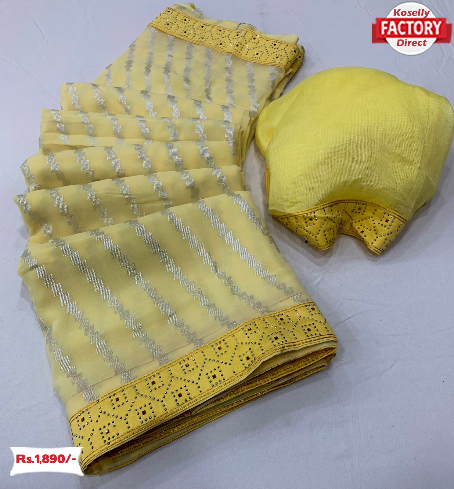 Yellow Georgette Leheriya Foil Work Saree