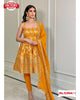 Yellow Peplum Style Kurtha Palazzo Dupatta Set