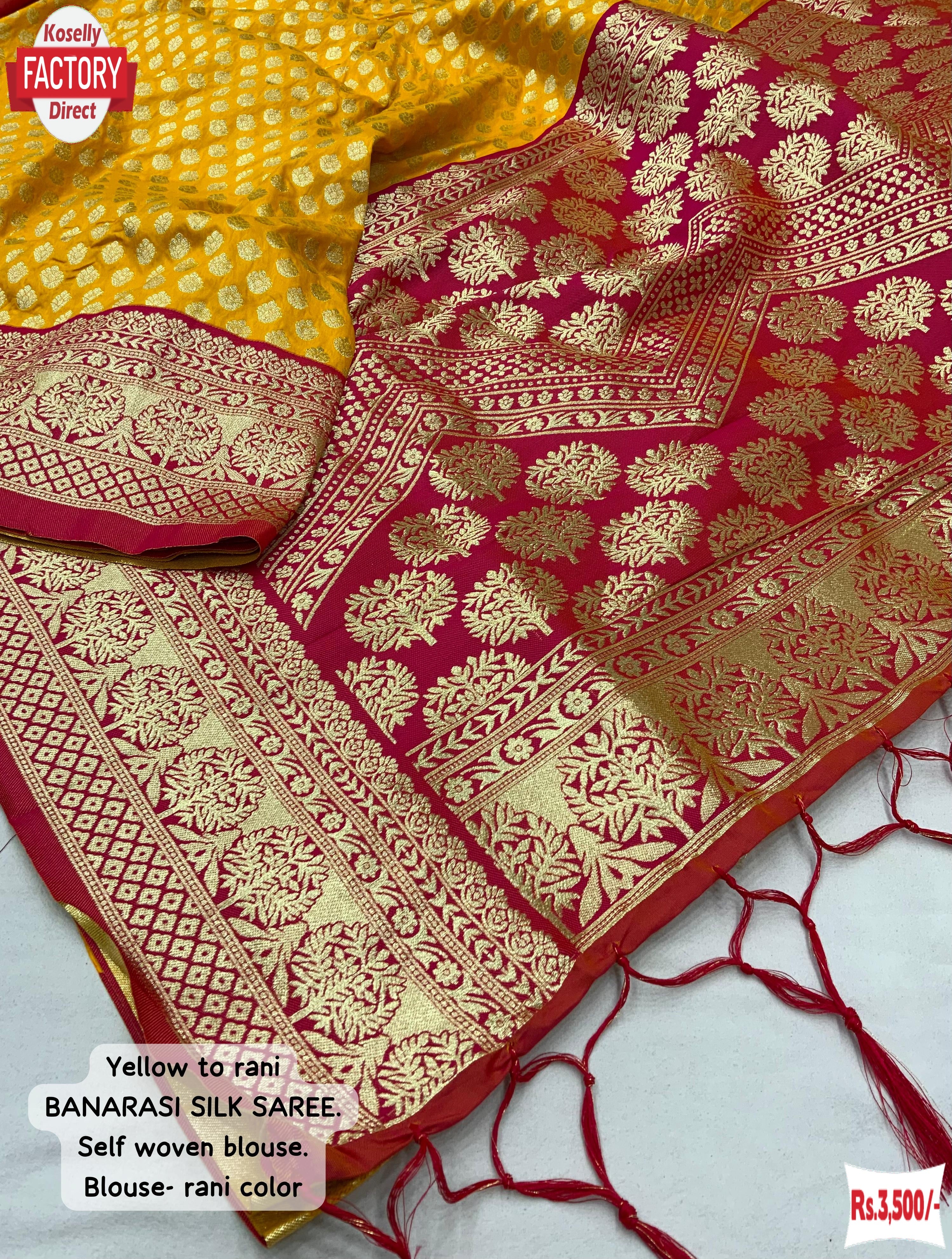 Yellow Pure Banarasi Silk Rich Zari Weaving Saree