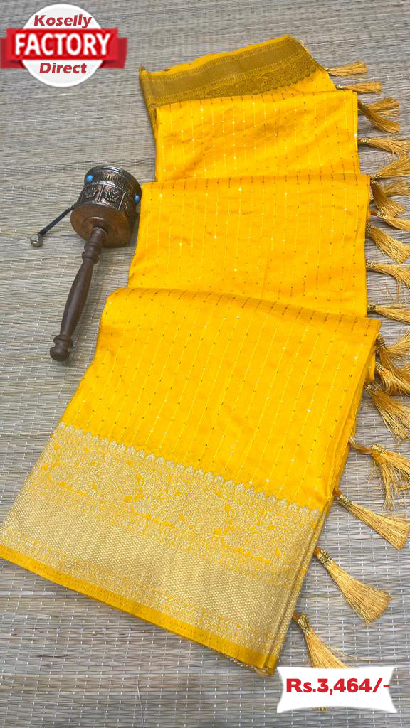 Yellow Pure Dola Silk Partywear Saree