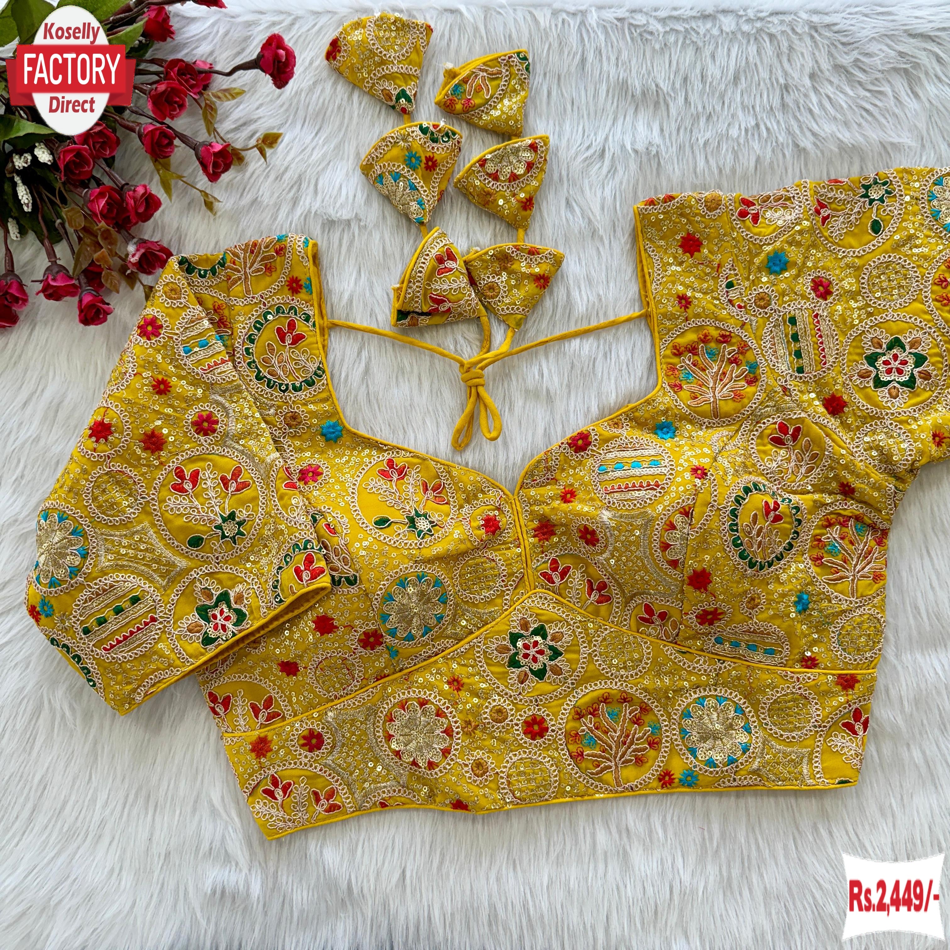 Yellow Sabyasachi Styled Georgette Coding Work Blouse