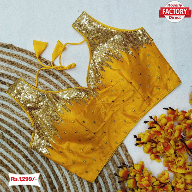 Yellow Silk Blouse With Fancy Sequins Work